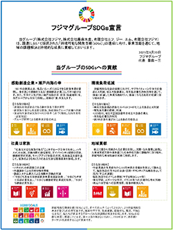フジマグループは2023年3月20日に、国連において採択された「持続可能な開発目標(SDGs)」の達成に向け、事業活動を通じて、地域の課題解決と持続的な成長に貢献することを理念とし、「SDGs 宣言」を策定いたしました。