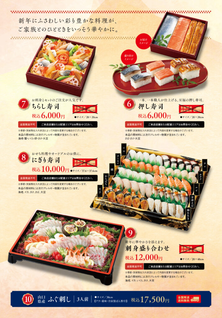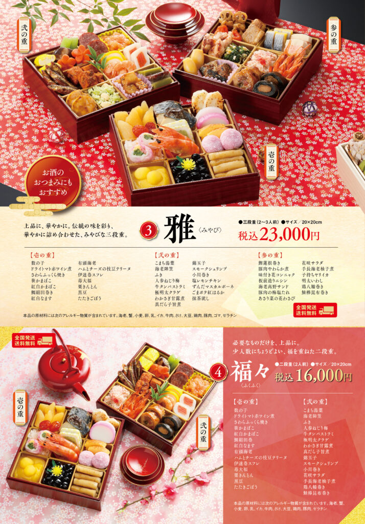 無料全国発送も承りますので、帰省の難しい遠方にお住いのご家族へのお届け、年末年始のご贈答にご利用ください。(一部商品を除きます。)